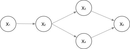$P(x_1, \cdots, x_n )=P(x_1)·P(x_2|x_1 )·P(x_3|x_2 )·P(x_4|x_2 )·P(x_5|x_3,x_4 )$